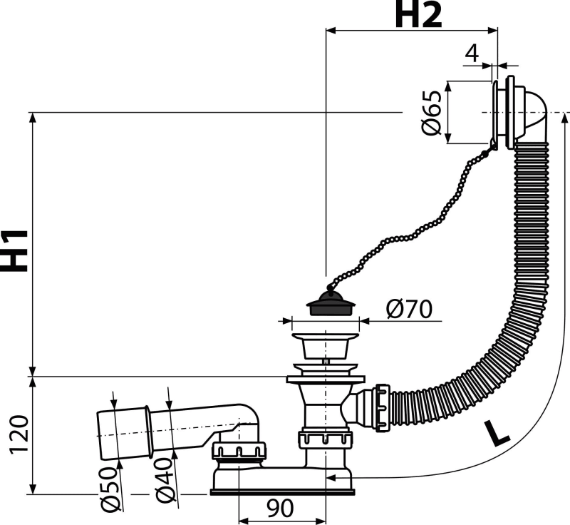 - Дължината на сифон за вана 57 cm