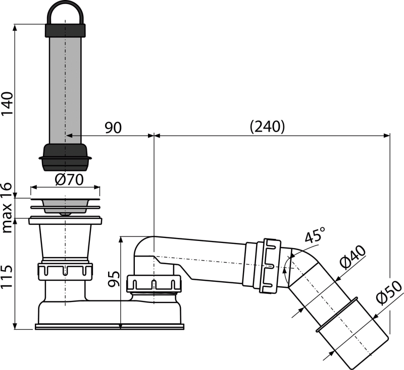 - Връзка към тръба за отпадни води Ø40 / 50 мм