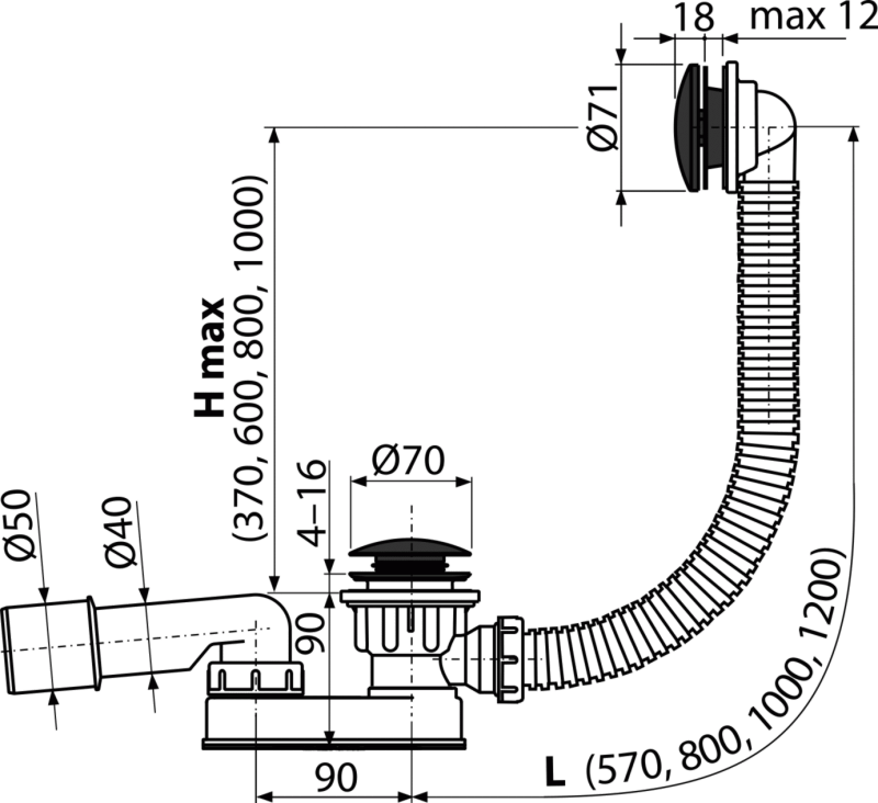 • Дължината на сифон за вана 57 cm