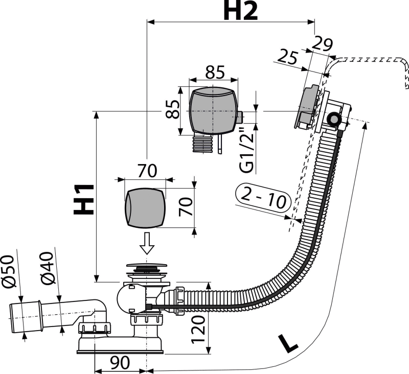 - Система за пълнене на вана, отпадни води и сифон