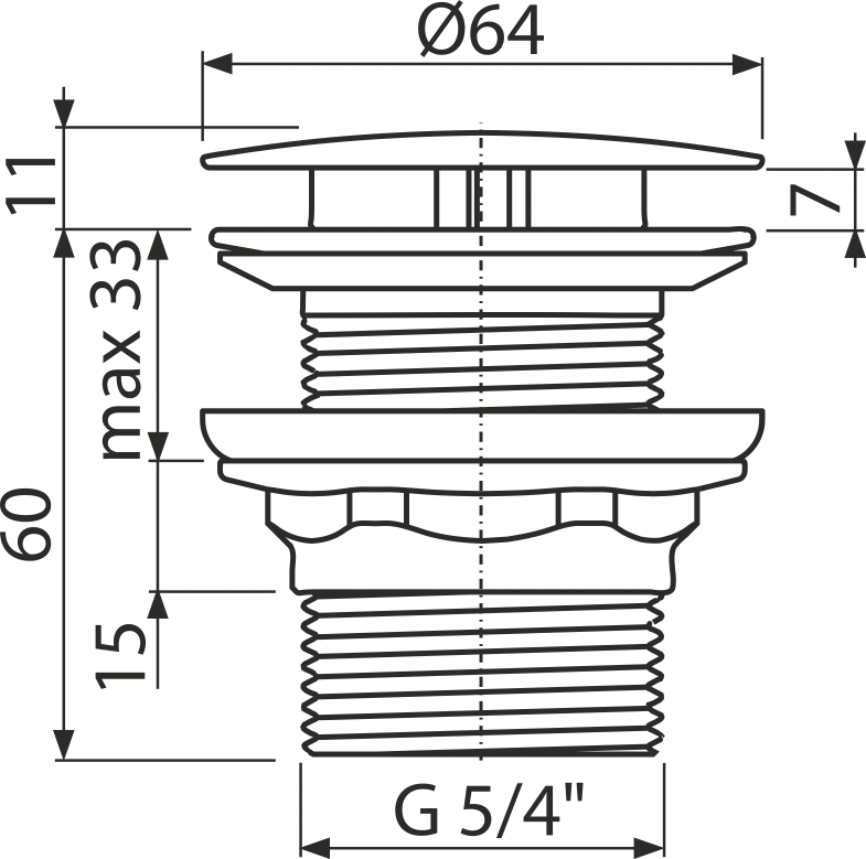 Витло метално за сифон 1 1/4", голяма тапа без затваряне за мивки без преливник