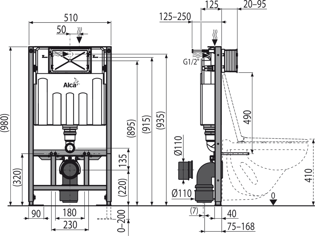 - За монтаж на окачени тоалетни чинии със свързваща стъпка от 180 мм или 230 мм