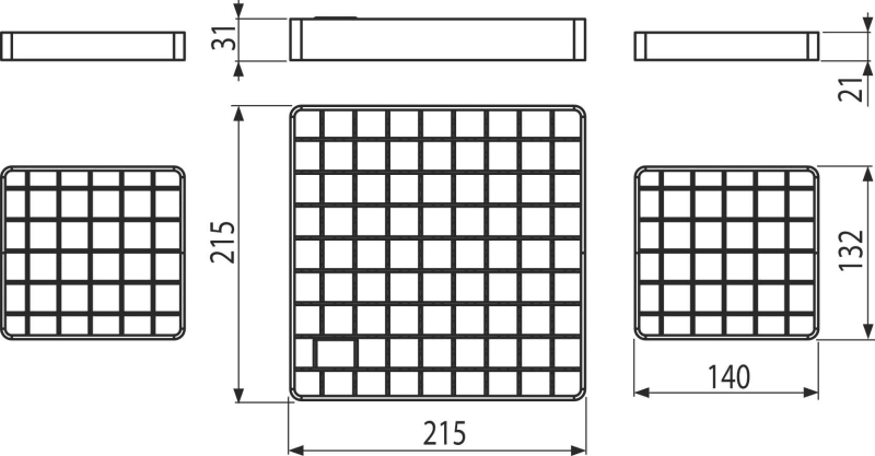 - Размери на решетката 215 × 215 мм, 132×140 мм